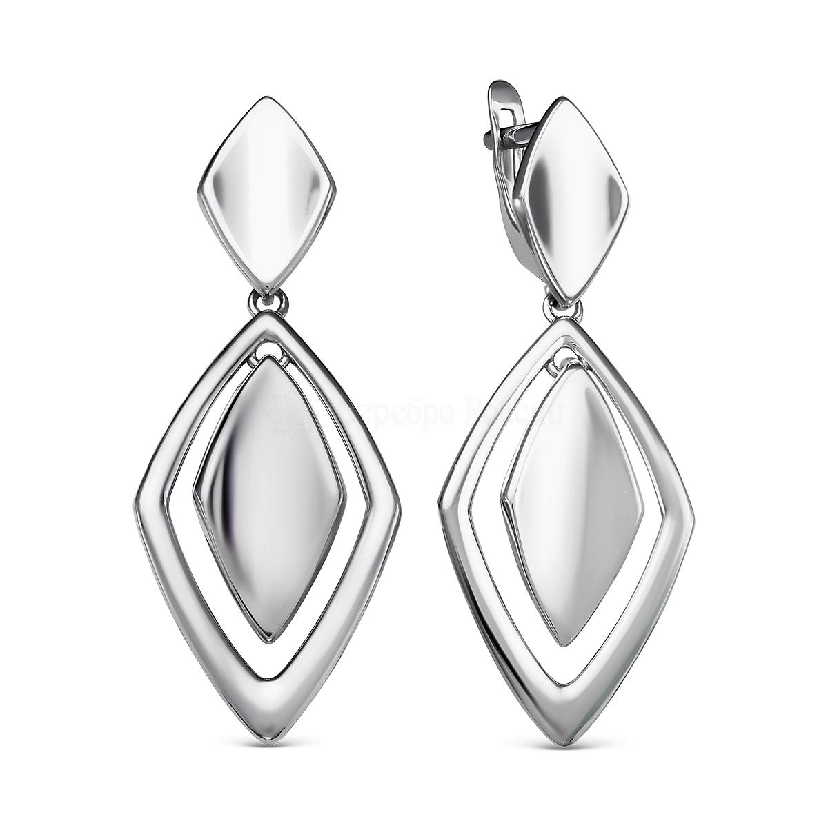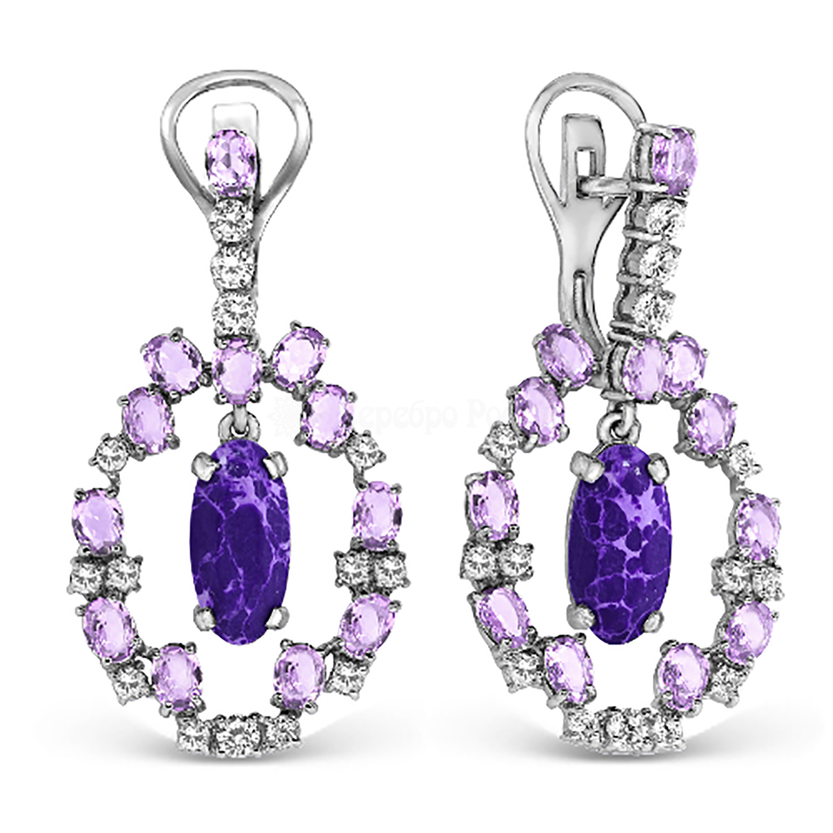 Серьги из серебра с рек.чароитами,пл. кварцемцв. аметист и фианитами родированные