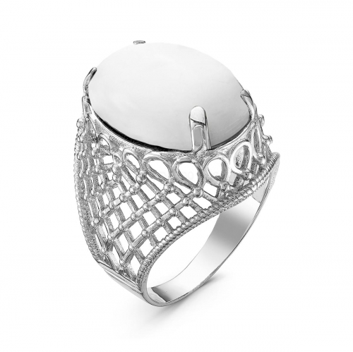 Кольцо из серебра с пл.кварцем цв.белый и фианитами родированное