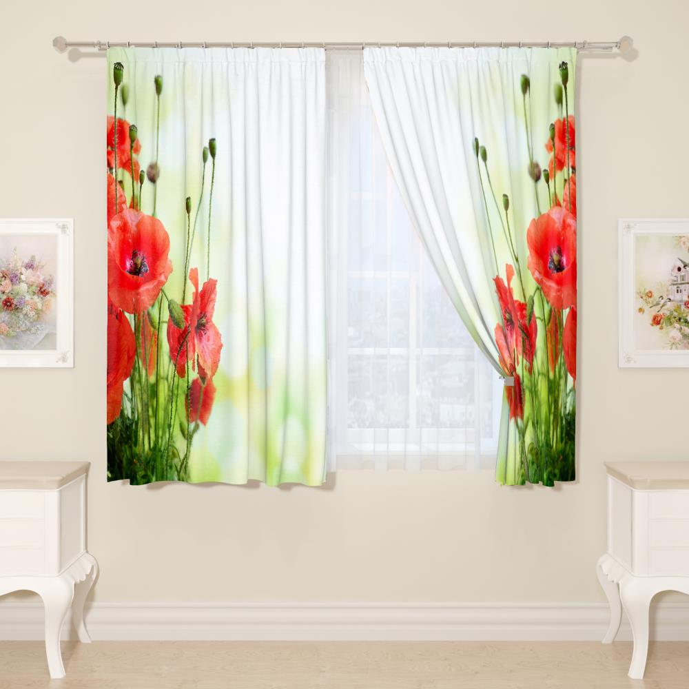 Фотошторы "Маки на зеленом фоне", 145*160 2 шт.