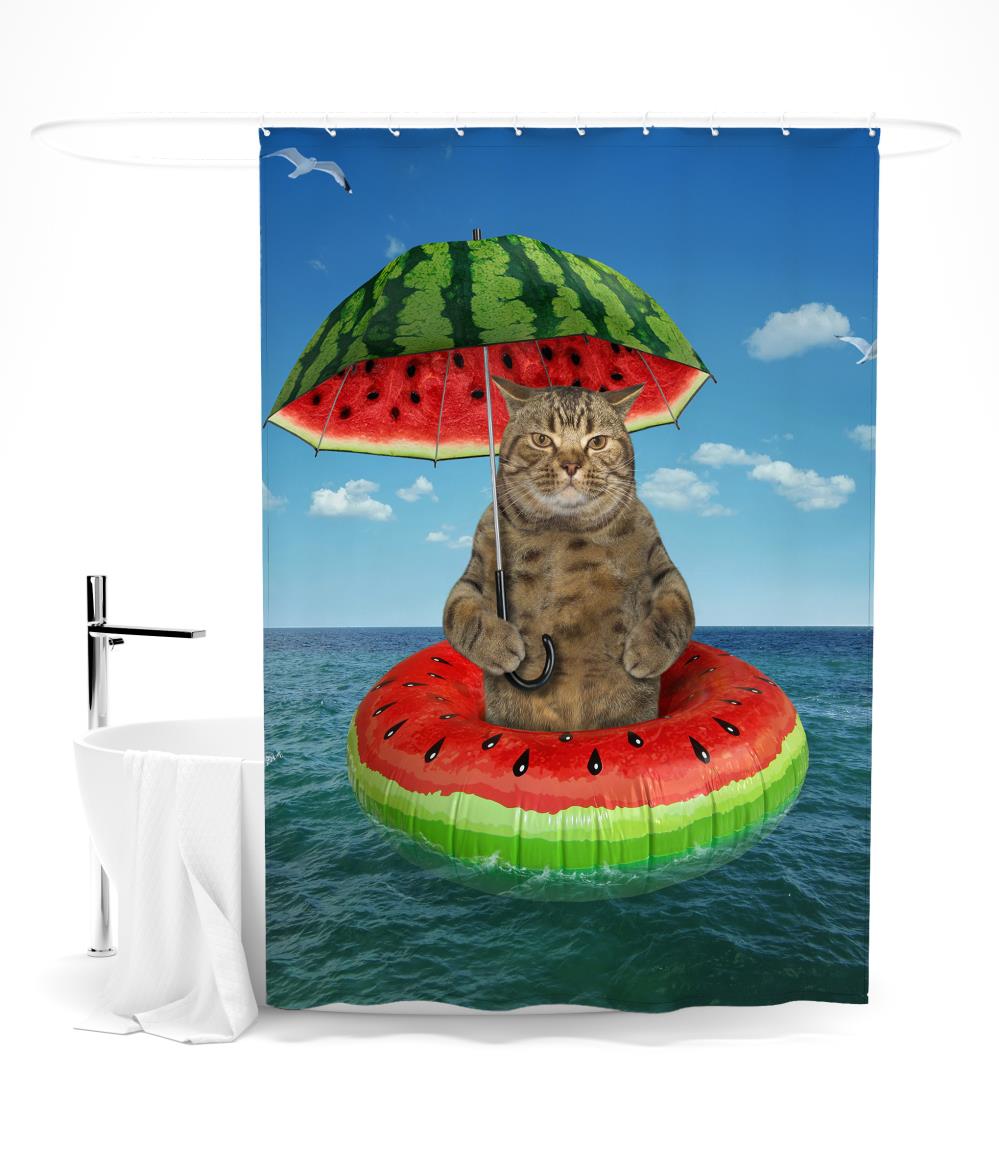 Шторка для ванной "Невероятные приключения кота" арт. ШТОК056-16565