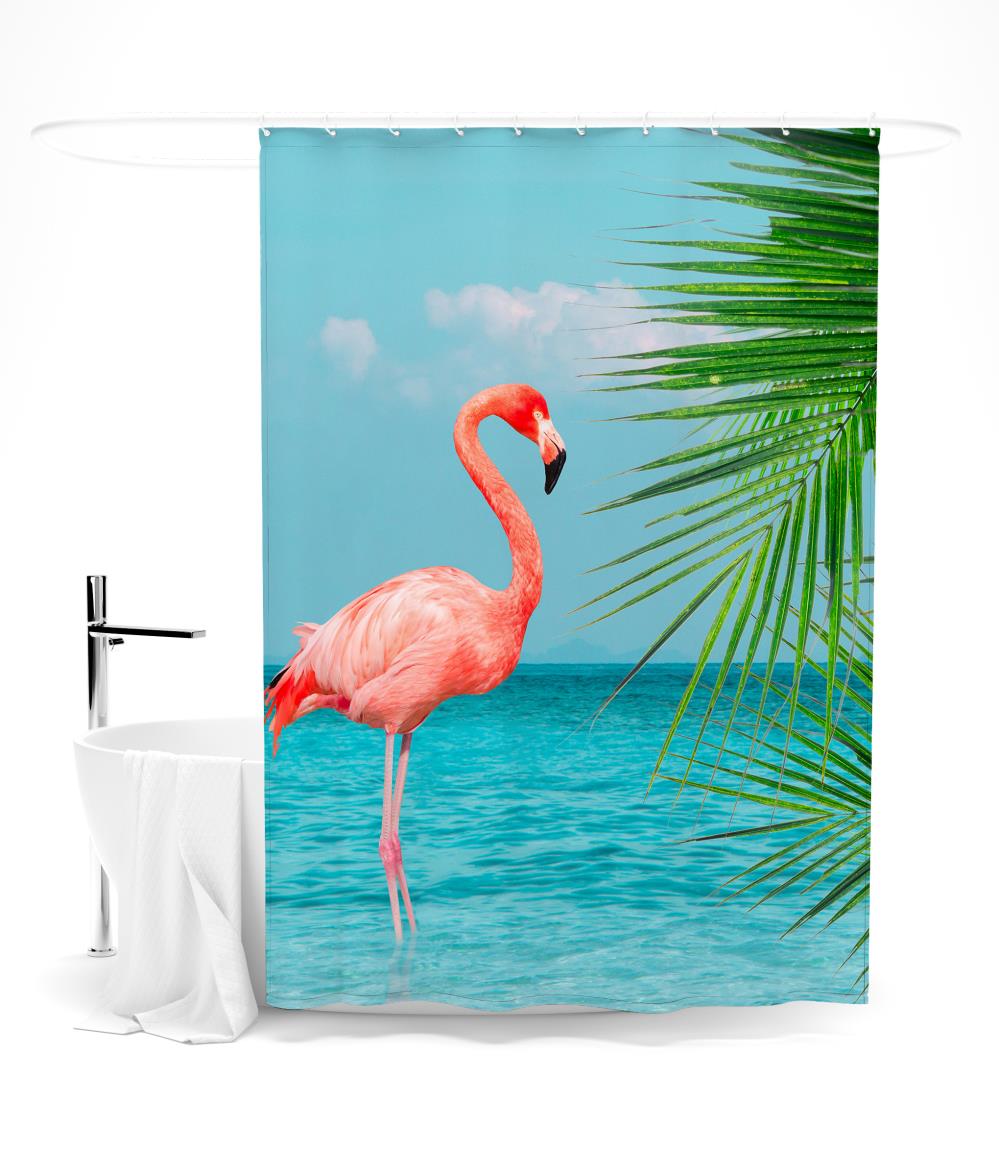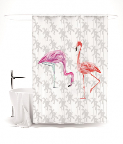 Шторка для ванной "Парочка розовых фламинго" арт. ШТОК056-12177