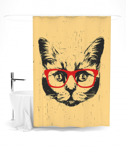 Шторка для ванной "Кот в красных очках" арт. ШТОК056-16608