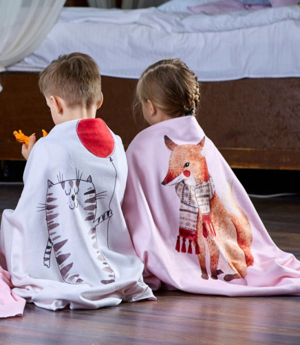 Плед флисовый, двусторонний "Лисенок в шапке", 90*140 см