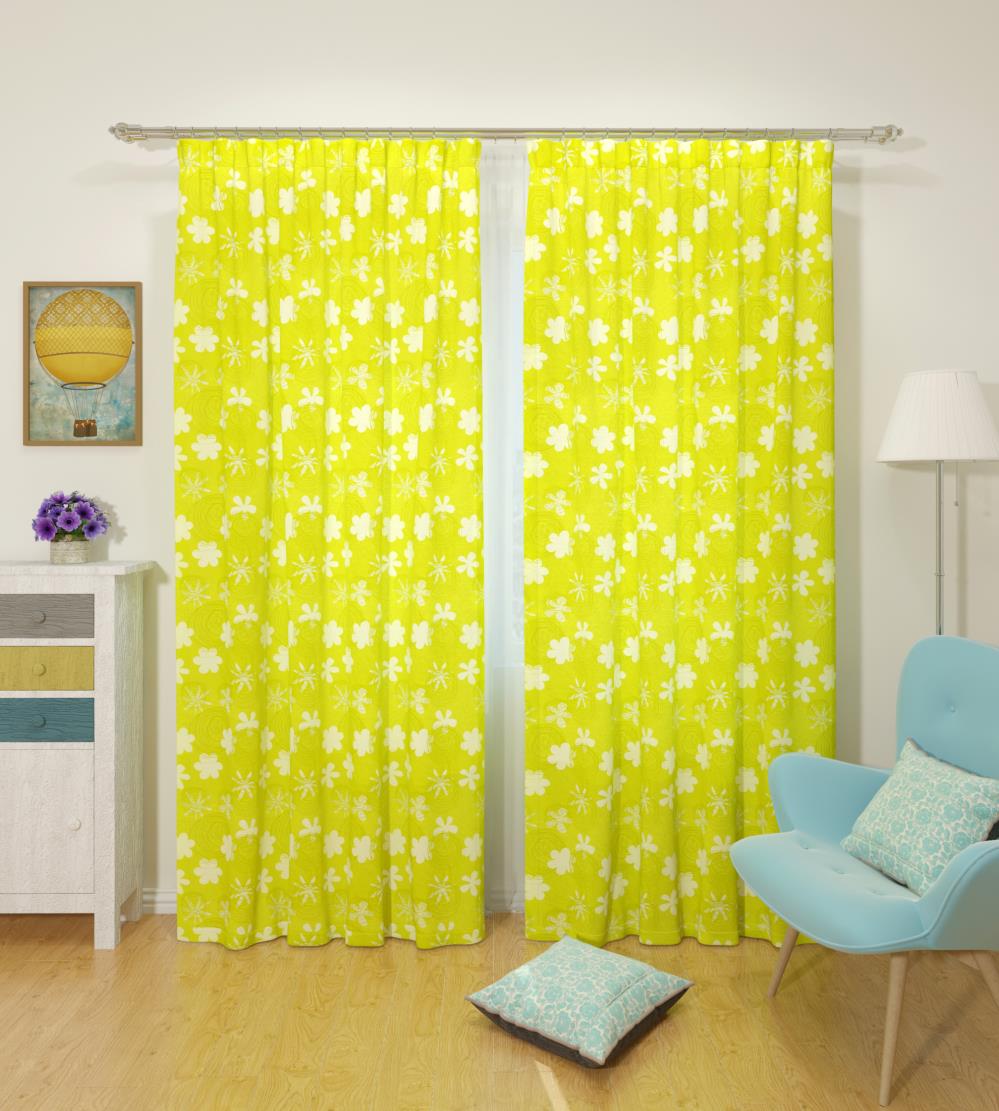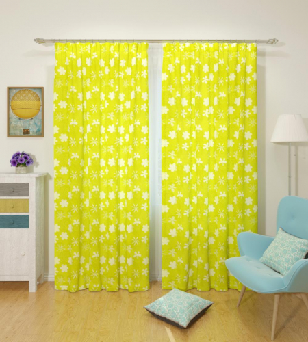 Фотошторы для детской "Белые цветы на желтом фоне", 145*260 2 шт.