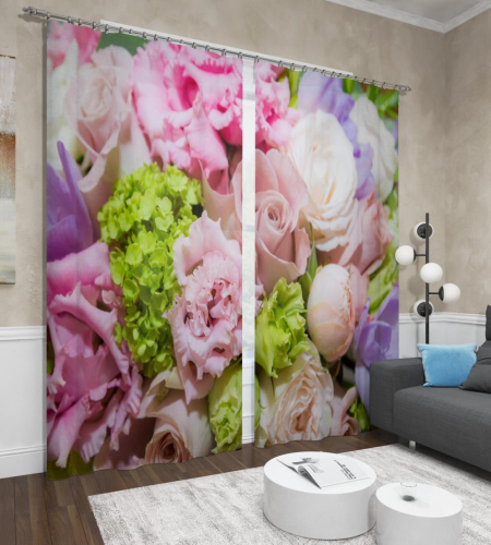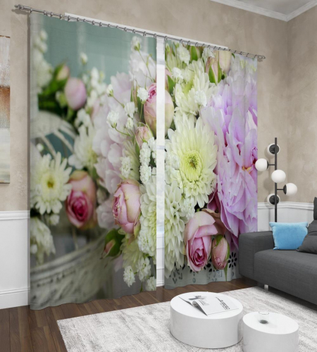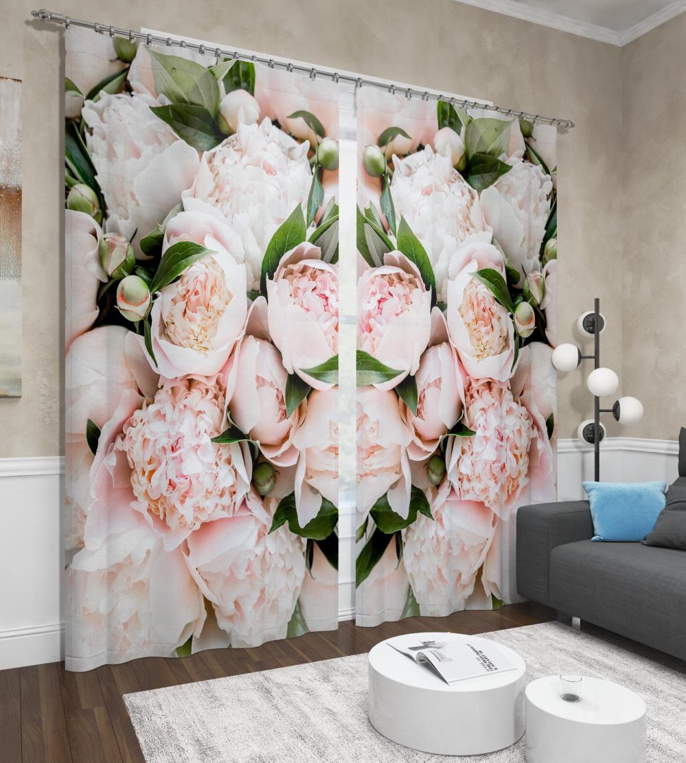 Фотошторы "Пионы и гортензия" 145*260 2 шт. Блэкаут