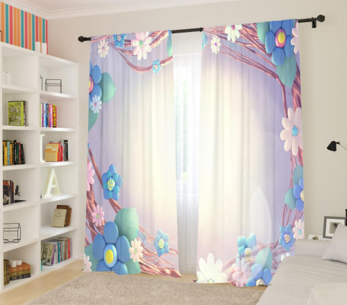 Фотошторы для детской "Пластилиновые цветы", 145*260 2 шт., Блэкаут