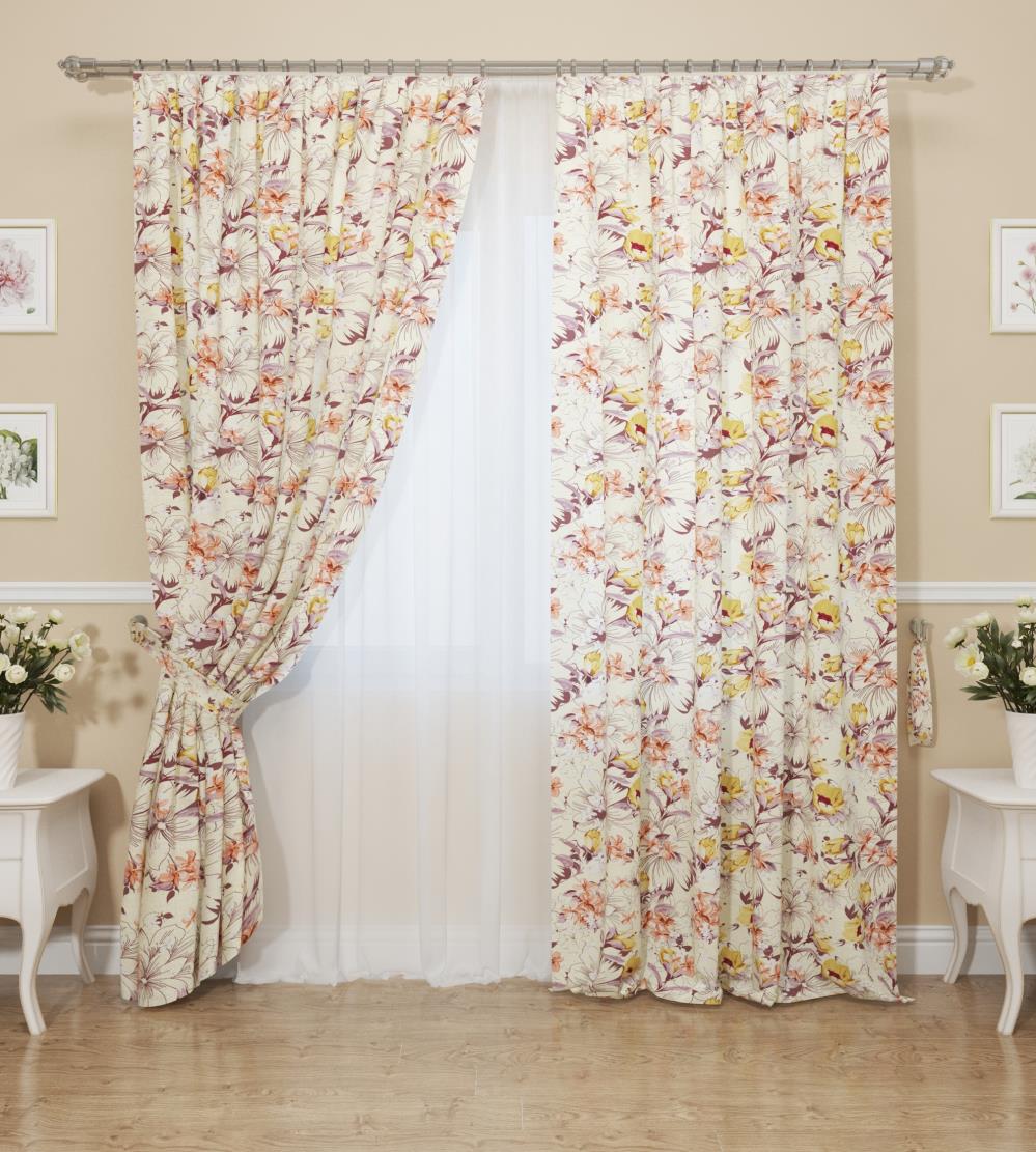 Комплект штор с подхватами, 145*260 см, штора 2 шт, подхват 2 шт.