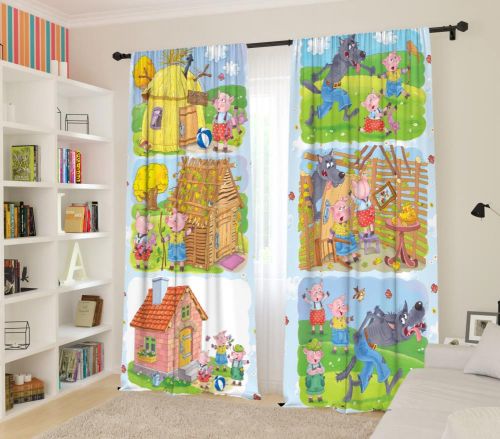 Фотошторы для детской "Сказка про поросят", 145*260 2 шт., Блэкаут