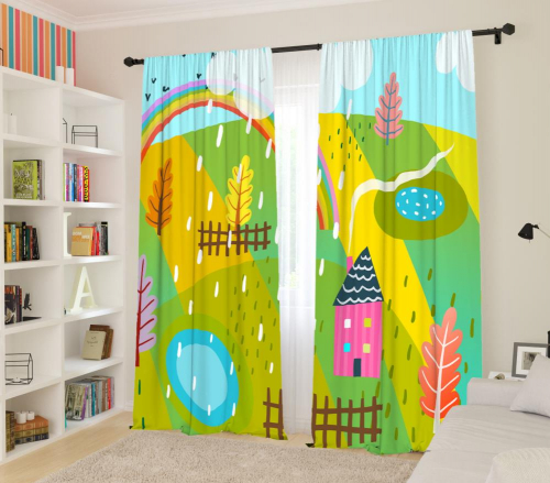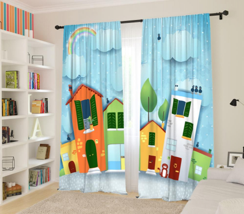 Фотошторы для детской "Домики", 145*260 2 шт., Блэкаут