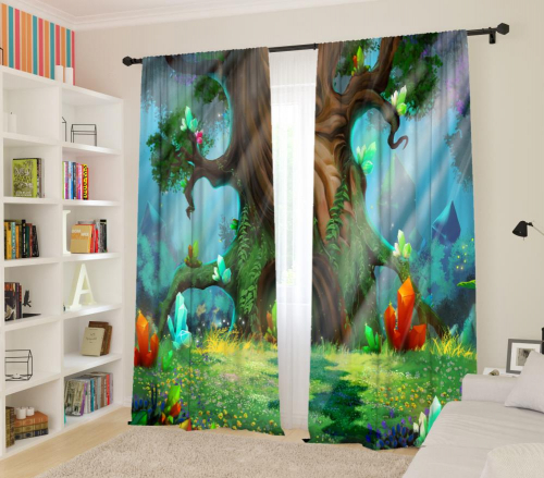 Фотошторы для детской "Лес с изумрудами", 145*260 2 шт., Блэкаут
