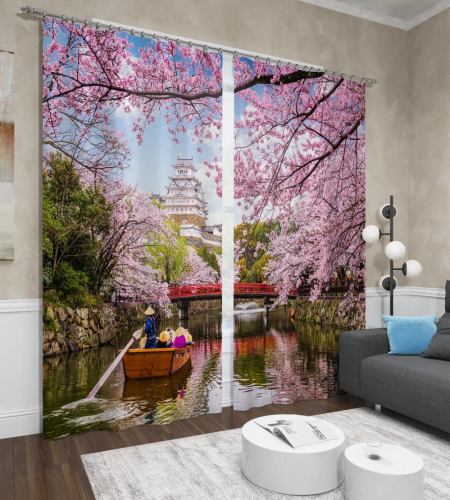 Фотошторы "Аромат сакуры" 145*260 2 шт. Блэкаут
