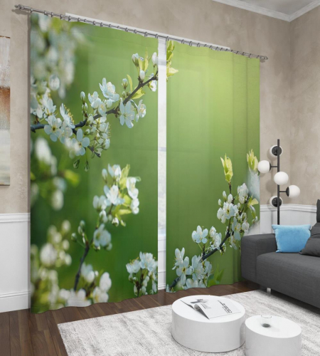 Фотошторы "Нежность яблони" 145*260 2 шт. Блэкаут
