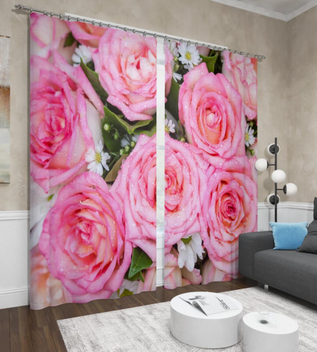 Фотошторы "Розы и роса" 145*260 2 шт. Блэкаут