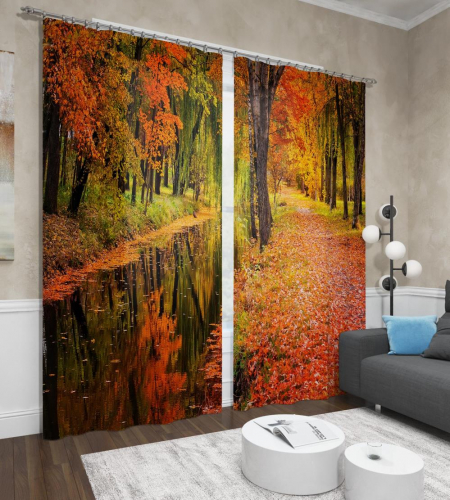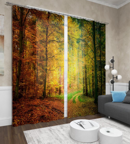 Фотошторы "Осенний лес" 145*260 2 шт. Блэкаут