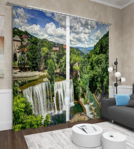 Фотошторы "Водопад в городе" 145*260 2 шт. Блэкаут