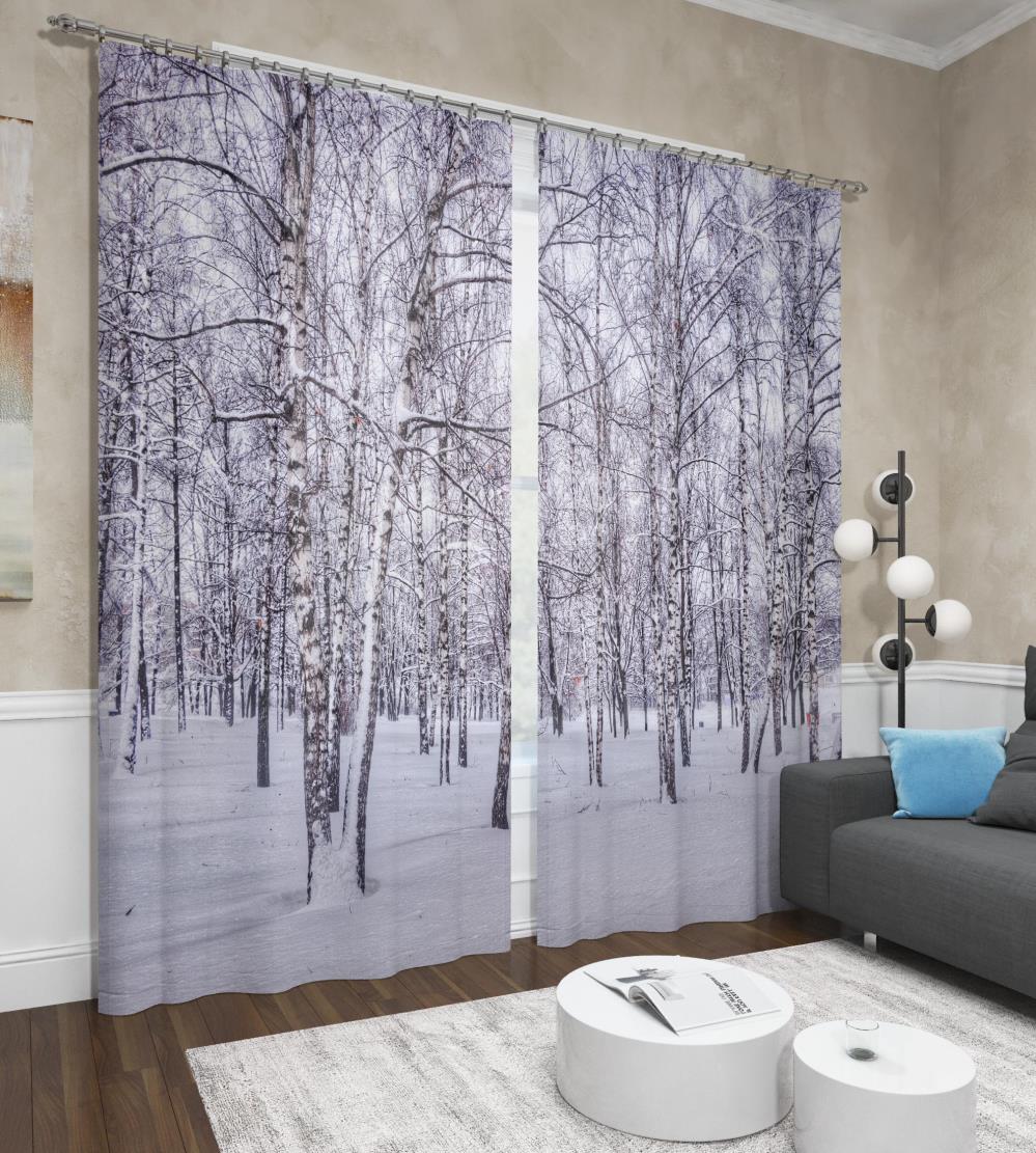 Фотошторы "Снежная роща" 145*260 2 шт. Блэкаут