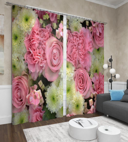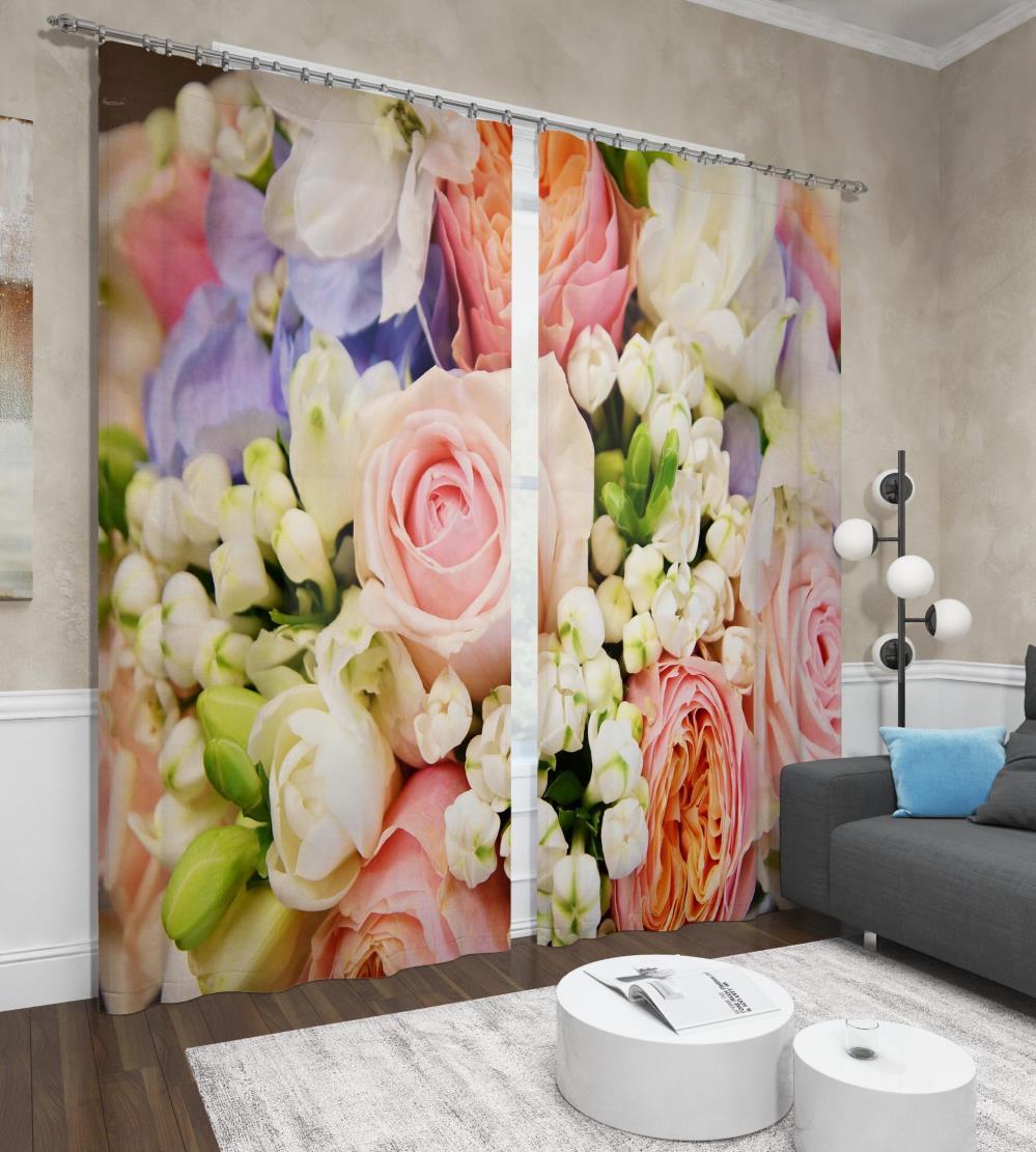 Фотошторы "Астры и розы" 145*260 2 шт. Блэкаут