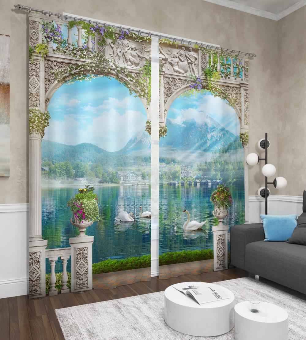 Фотошторы "Лебеди" 145*260 2 шт. Блэкаут