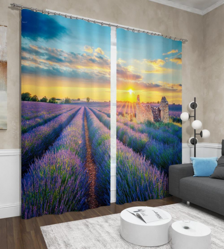 Фотошторы "Лавандовый закат" 145*260 2 шт. Блэкаут