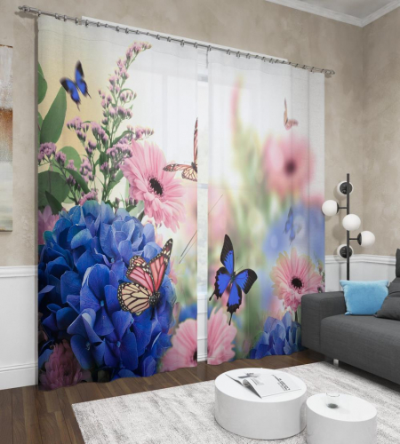 Фотошторы "Цветы и бабочки" 145*260 2 шт. Блэкаут
