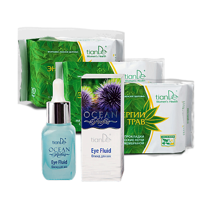 АКЦИЯ! 1+1+1=4 Купи набор прокладок «Энергии трав»: ежедневные + на критические дни + на критические ночи – В ПОДАРОК флюид для век Ocean Riches!