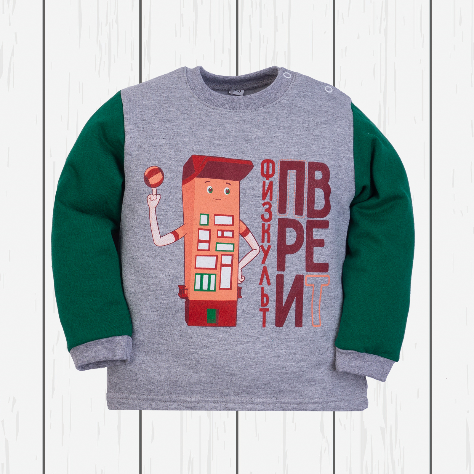 Джемпер детский с принтом (футер) арт.Л675-зеленый_меланж_Петя