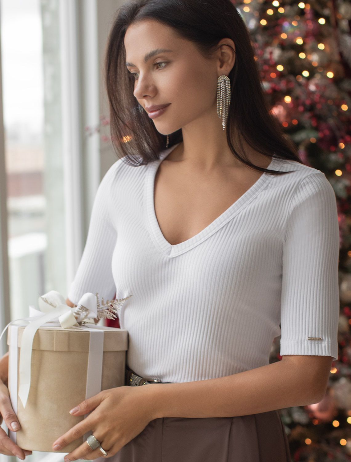 Джемпер из трикотажа в широкий рубчик D49.107 белый