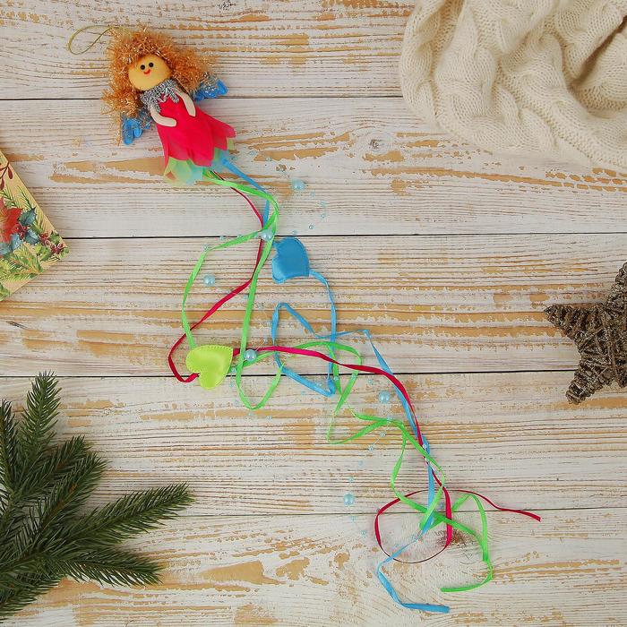 Подвеска мягкая на ёлку «Ангелочек - шлейф с сердечками», мягкая, 10×7 см разноцветный