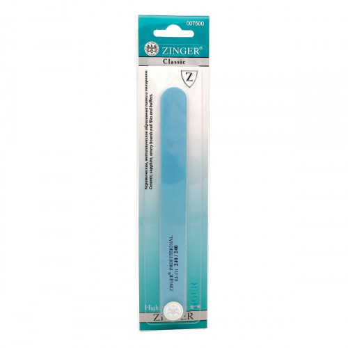 Zinger Пилка для натуральных ногтей абразивная прямая / Classic EJ-111, 240/240 грит, голубой