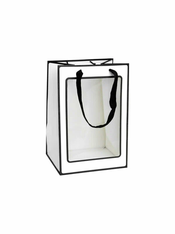 2341 Пакет подар.бумажый с окошком (20*30*16см) Белый/Чёрный (*20)