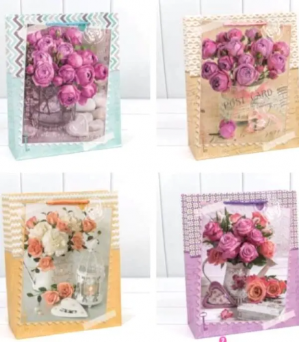 66 Сумка подар.бумажная 00026H (12*15*5,5) матовый "Цветы" (микс) *20