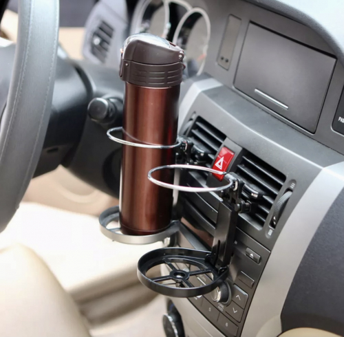 Удобный держатель для напитков, крепится на решётку воздуховода и подходит для установки в большинство автомобилей. Держатель легко устанавливается и снимается.