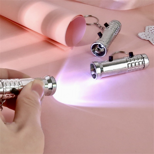 Маленький фонарик выполненный в виде стильного брелка, работает от батареек.
