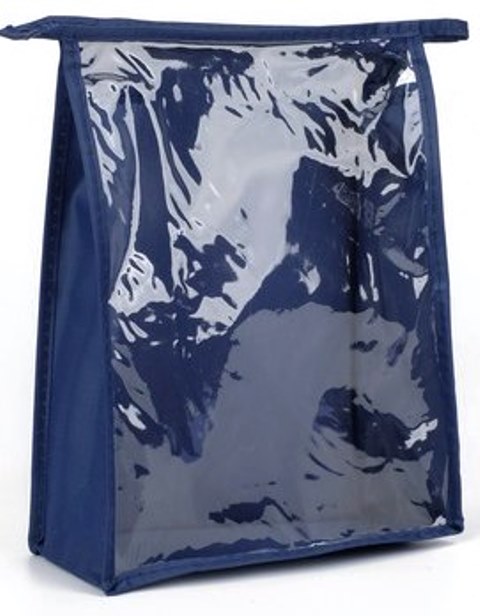 К150 Косметичка ПВХ (21*14*5) Классика задняя стенка ткань, Синяя