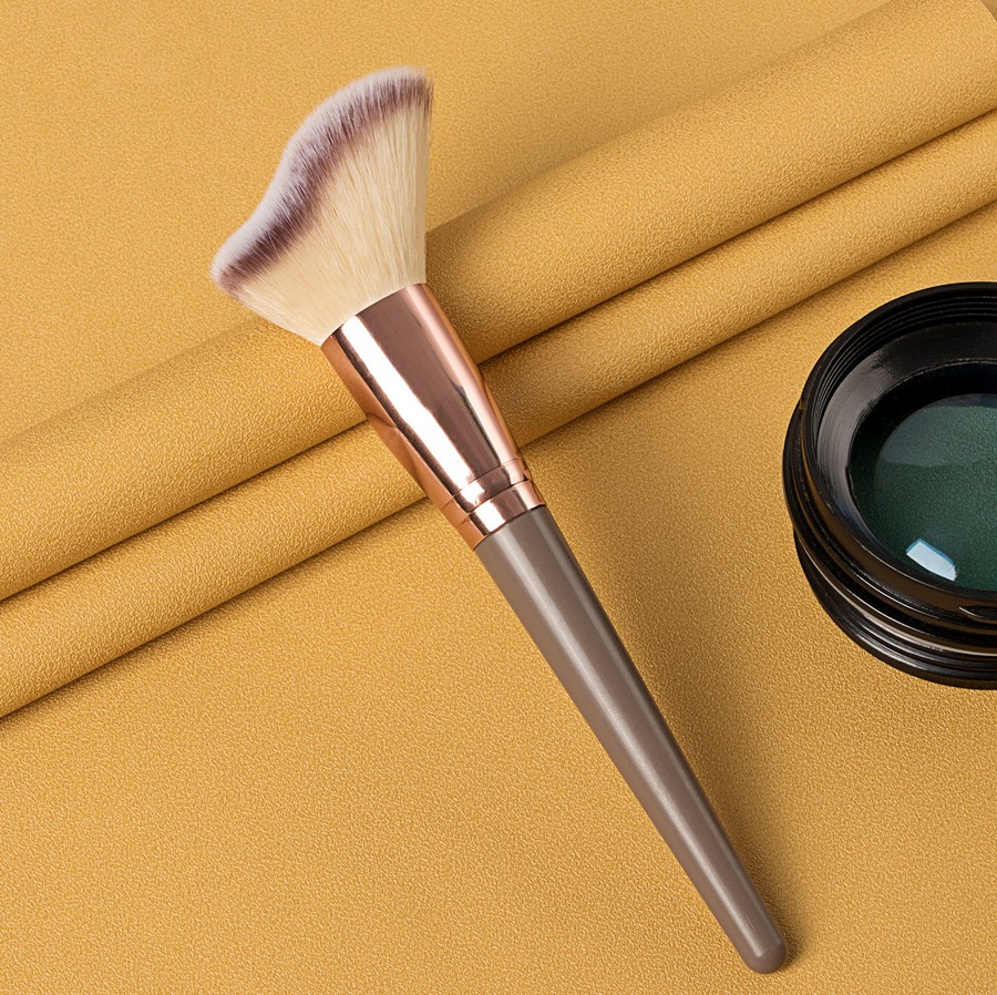 Скошенная кисть идеально подходит для нанесения сухих текстур. Можно использовать для нанесения румян, хайлайтера и бронзера.