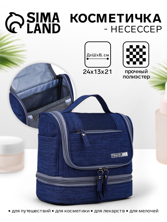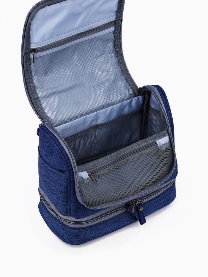 Косметичка - несессер дорожная на молнии, с крючком, с ручкой, с отделами, синий