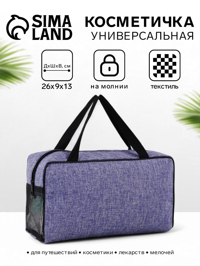 Косметичка-сумка на молнии, большая, с ручками, сеткой, синяя
