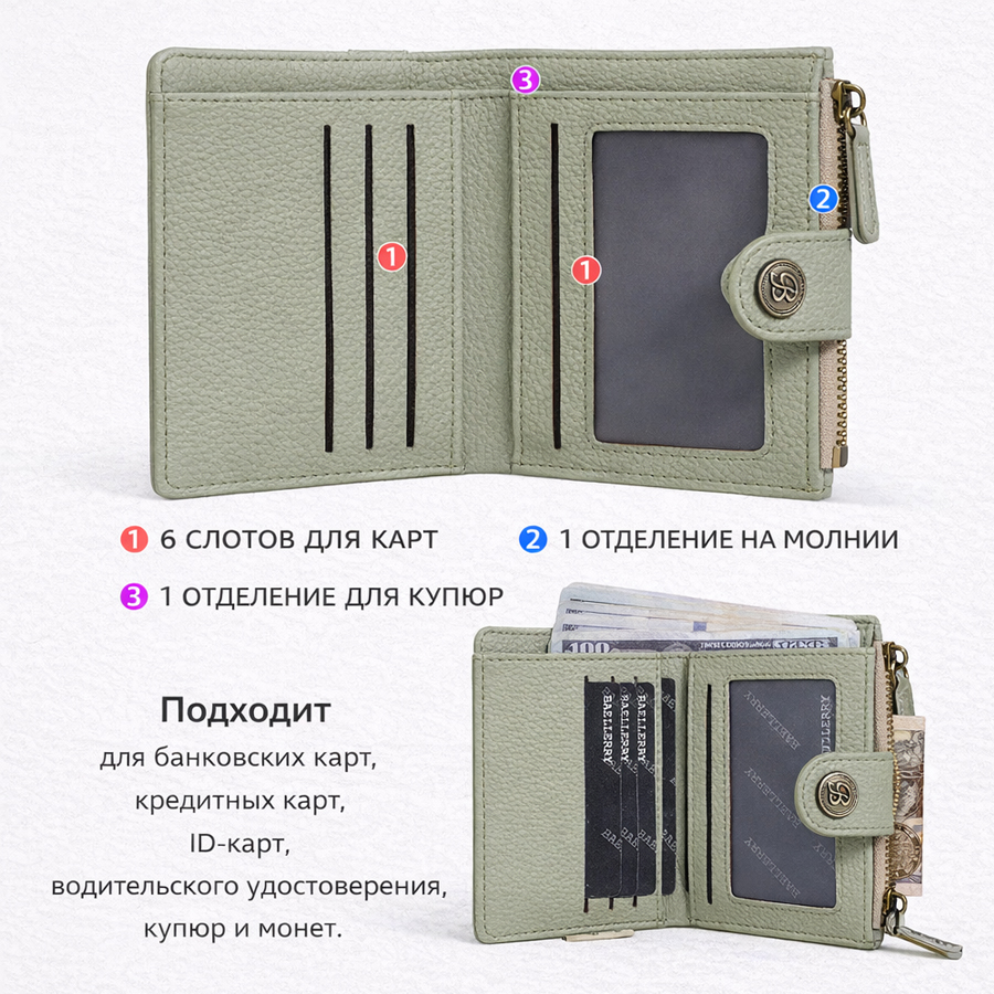 Внутри: отделения для купюр и монет