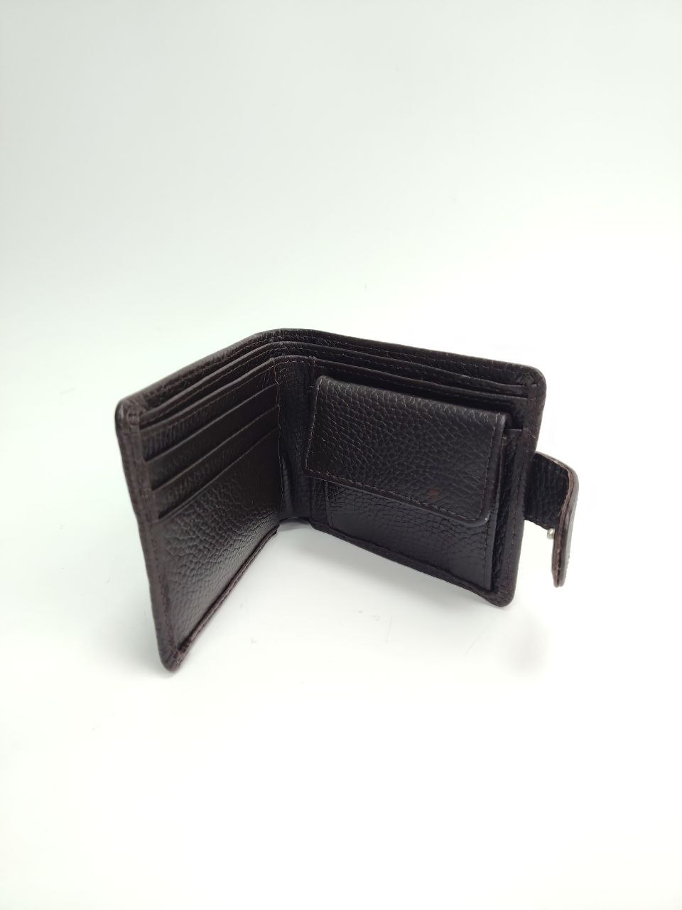 Внутри: 3 отделения для кредитных и дисконтных карт, 1 отделение для монет на кнопке.