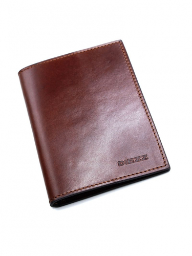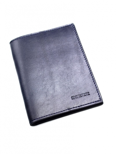 Облажка для паспорта черного цвета из натуральной кожи с отделениями для карт.