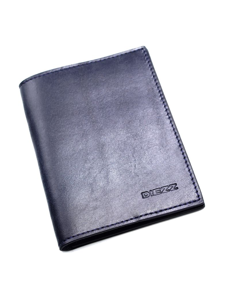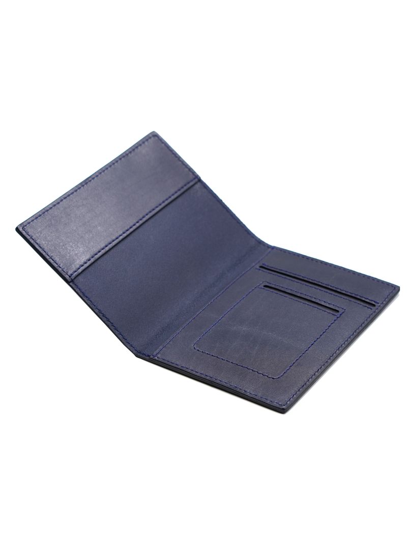 Облажка для паспорта синего цвета из натуральной кожи с отделениями для карт.