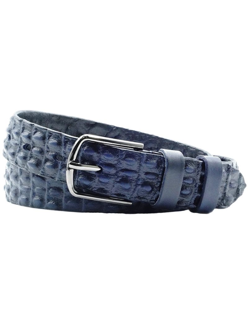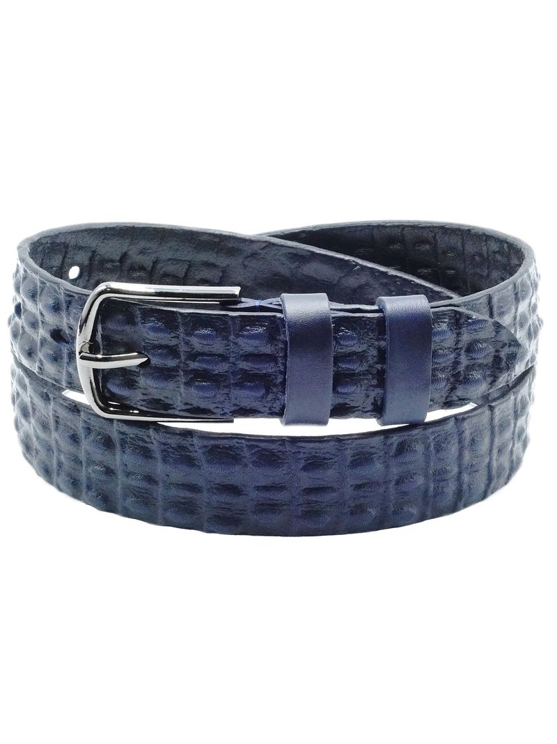 Детский ремень из натуральной кожи для джинсов синего цвета, ширина 30 мм.