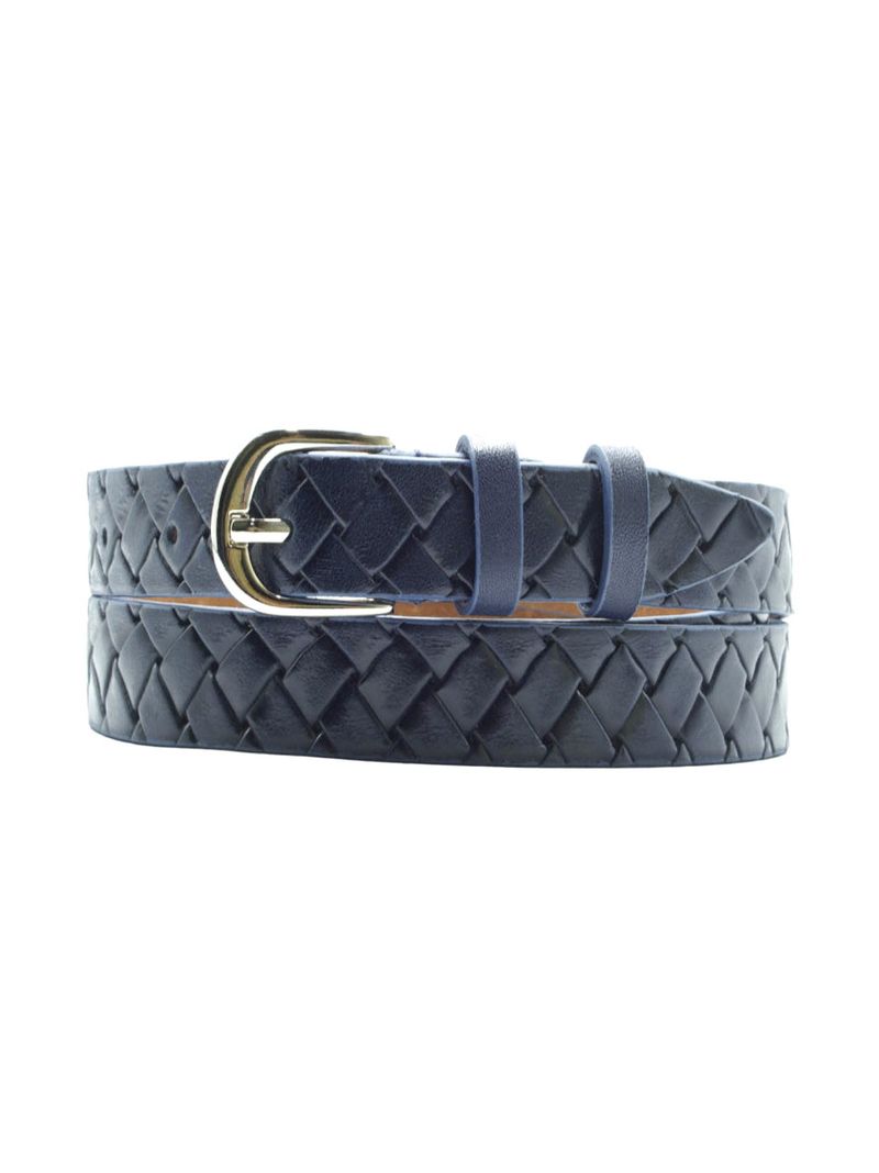 Женский ремень из натуральной кожи для брюк синего цвета, ширина 20 мм.