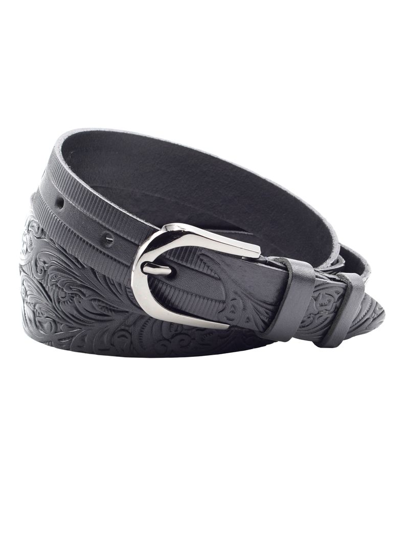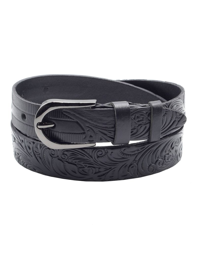 Женский ремень из натуральной кожи Флотер для брюк черного цвета, ширина 25 мм.