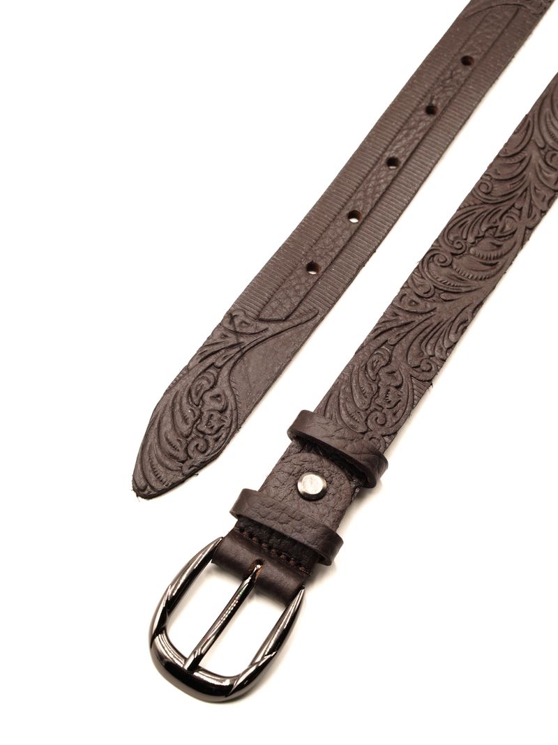 Женский ремень из натуральной кожи Флотер для брюк коричевого цвета, ширина 25 мм.