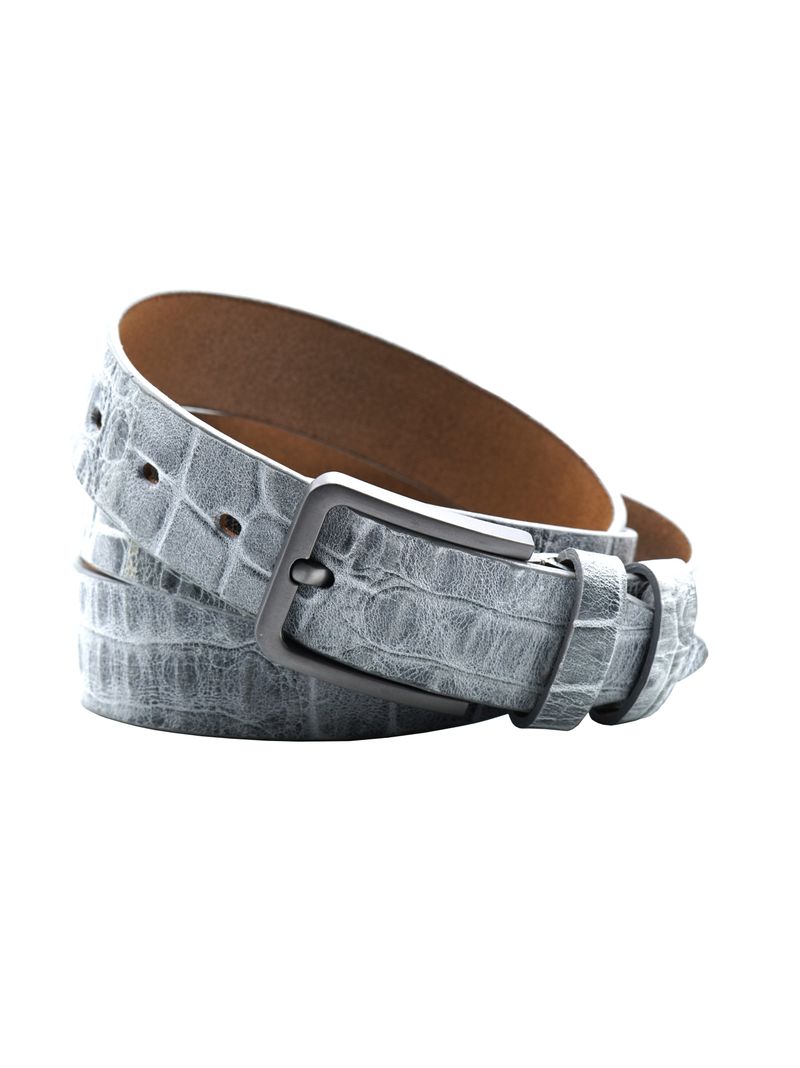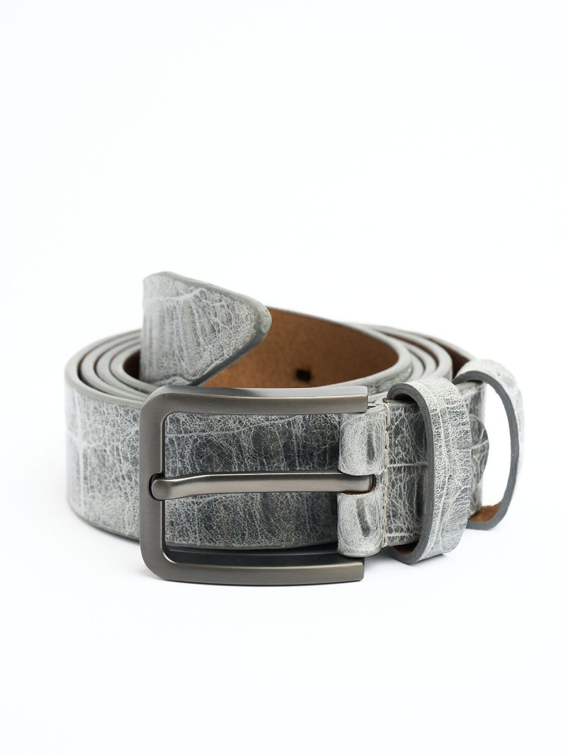 Изделие изготовлено из двух слоев, верхний слой- итальянская кожа с тиснением под крокодила, нижний- вощеный спилок. Бока ремня окрашены эластичной краской в тон цвета кожи.