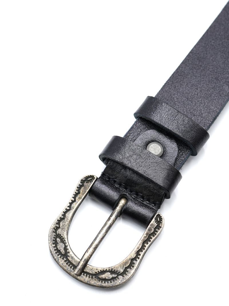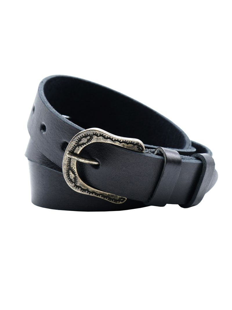 Женский ремень из испанской натуральной кожи для джинсов черного цвета, ширина 35 мм.