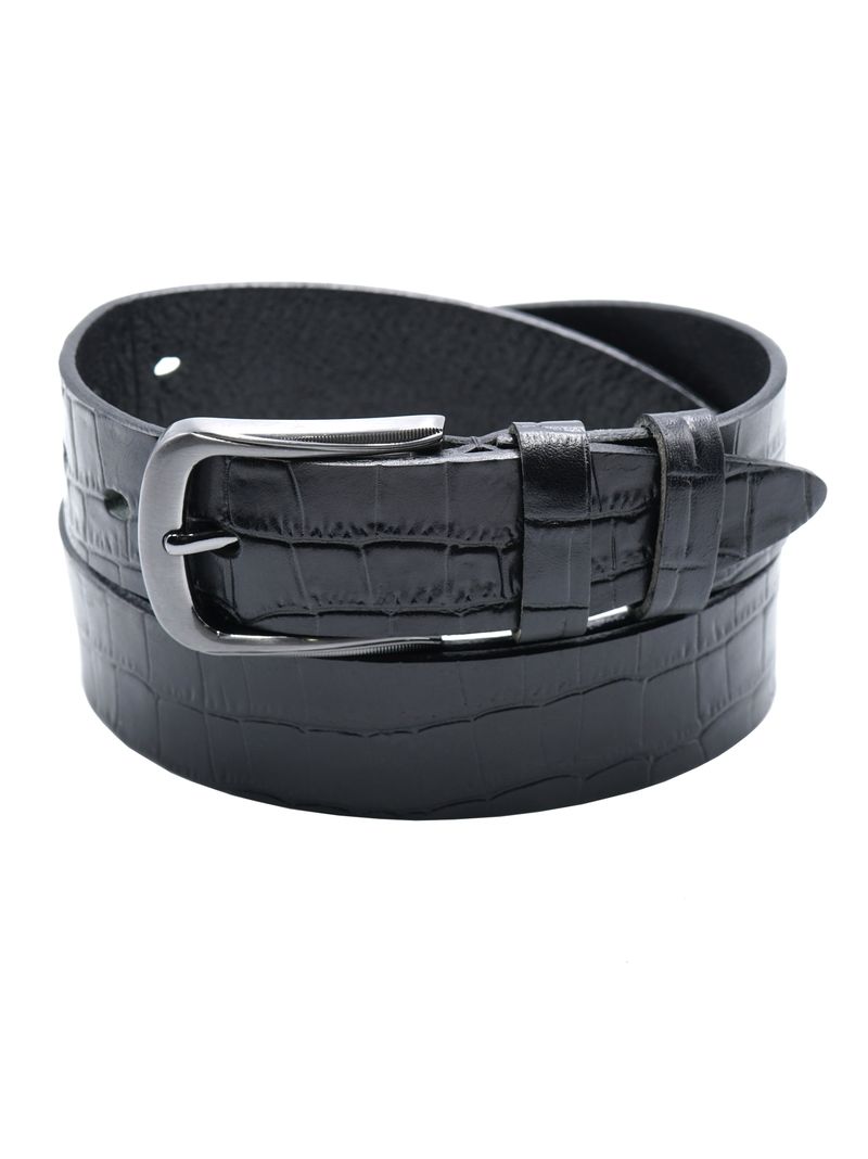 Женский классический ремень из итальянской натуральной кожи черного цвета, ширина 35 мм.