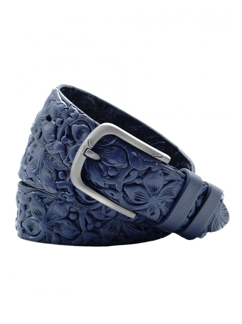 Женский ремень из натуральной кожи для джинсов синего цвета, ширина 40 мм.