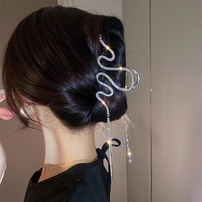 Краб для волос металлический сверкающий Змейка с Цепочками. Цвет: СЕРЕБРО